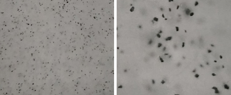 (图为产品中随机抽样颗粒分布显微图像,显示单颗粒分散均匀,无团聚且悬浮性好)